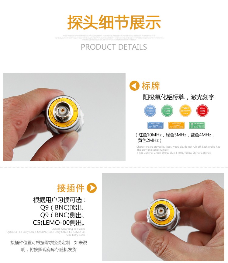 应用范围: 宇时2.5P14N超声波探伤仪单晶直探头适合金属焊缝锻件焊件测量.
