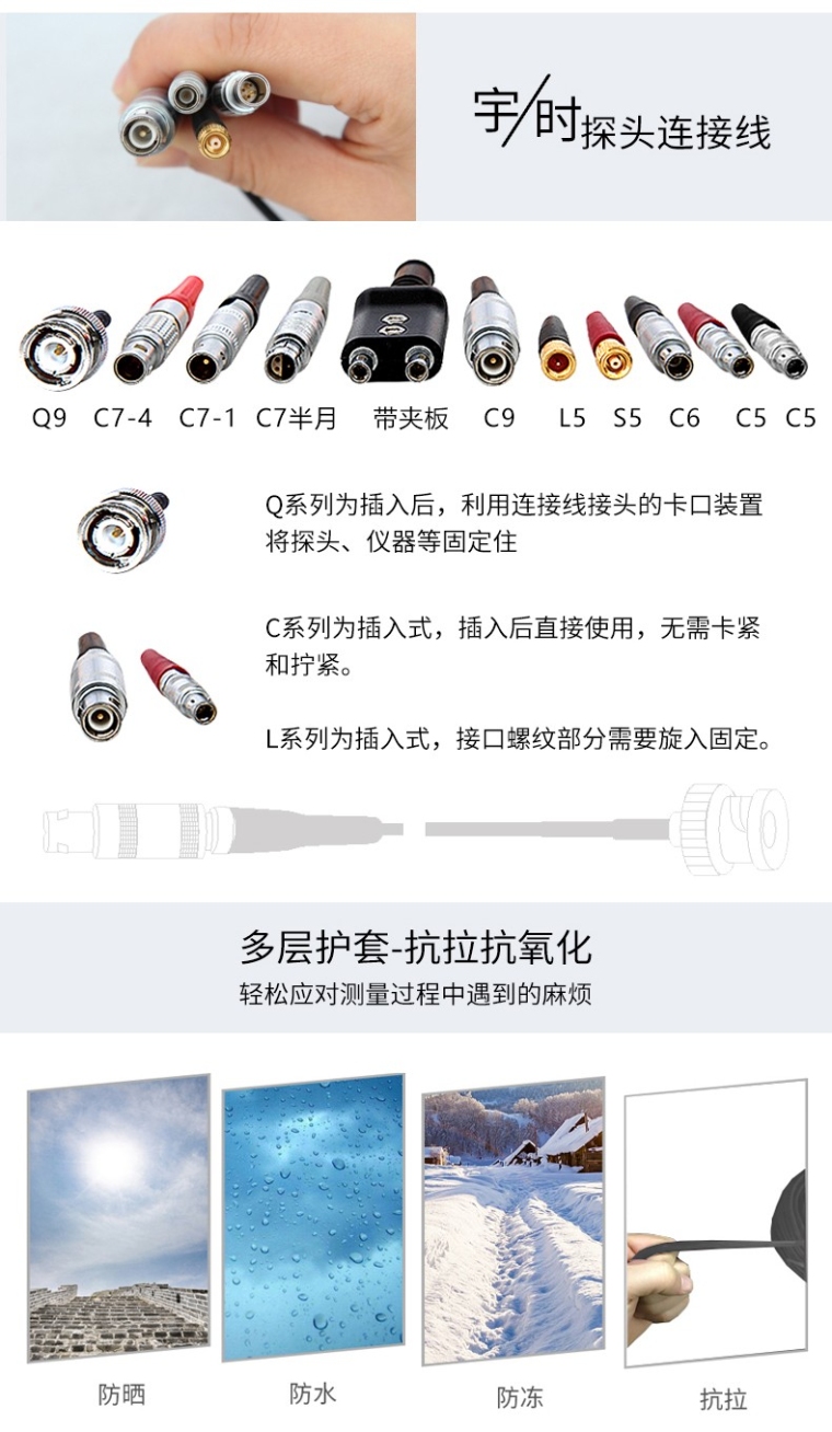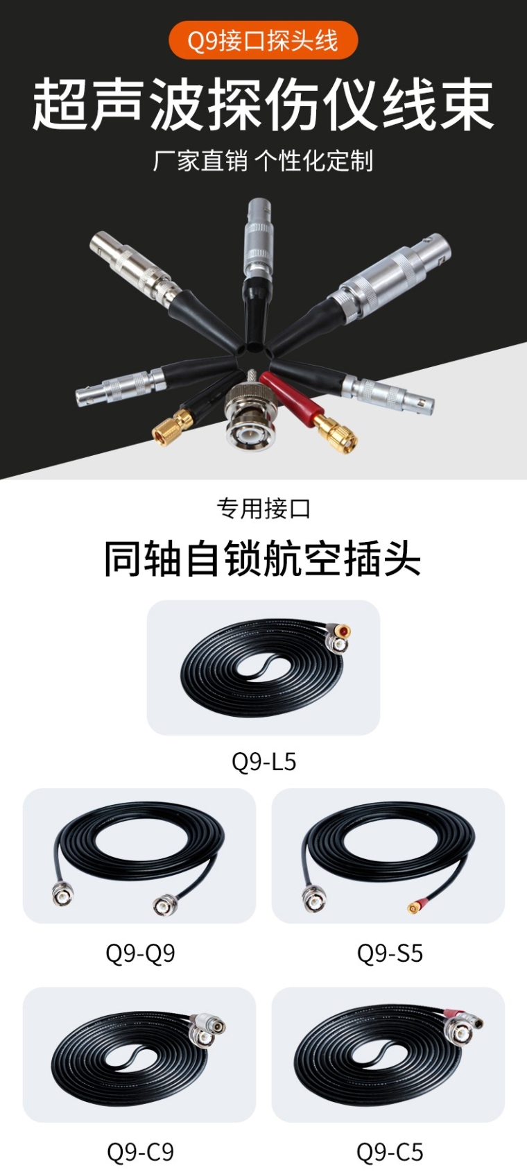千余种规格型号的超声波探伤探头线,Q9,Q6,C5,C6,C9,S5,L5等接口,可定制!