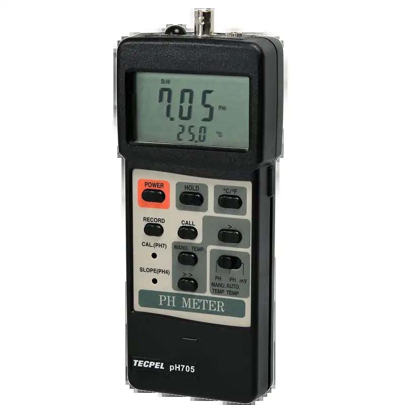 pH-705 具有温度补偿功能,及可更换援氧化还原测棒功能,适合实验室及需要较高精确度实验使用。