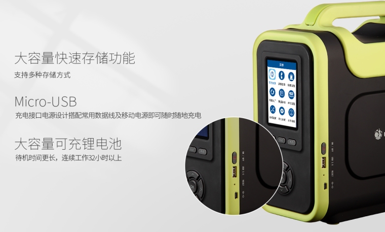 电池容量: | 3.7VDC,10000mA可充电的高分子聚合物电池 ,带过充、过放、过压、短路保护功能 | |