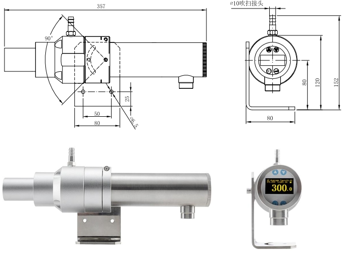安装角度可以任意调节,自带吹扫套,可有效防尘,适用于环境温度不高的场合下使用。