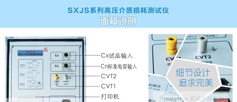 SXJS-III型高压介质损耗测试仪用于现场抗干扰介损测量,或试验室精密介损测量。仪器为一体化结构,内置介损电桥、变频电源、试验变压器和标准电容器等。采用变频抗干扰和傅立叶变换数字滤波技术,全自动智能化测量,强干扰下测量数据非常稳定。测量结果由大屏幕液晶显示,自带微型打印机可打印输出。