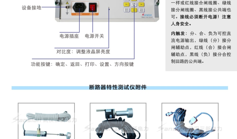 8.动作电压:机内提供DC0~300V/20A数字可调断路器动作电源,自动完成断路器的低电压动作试验,测量断路器的动作电压值。
