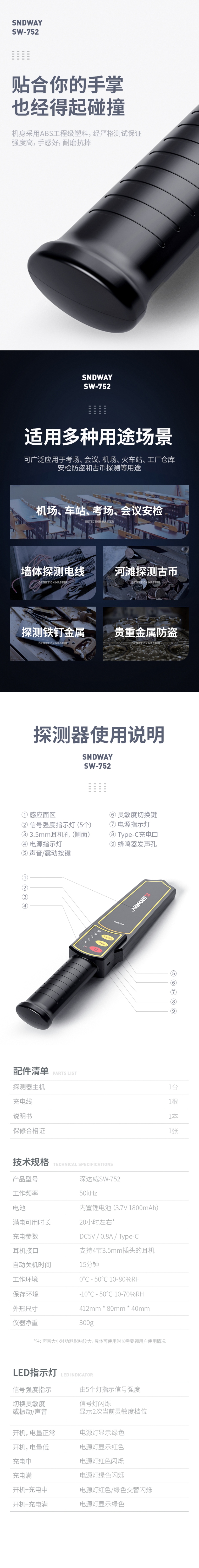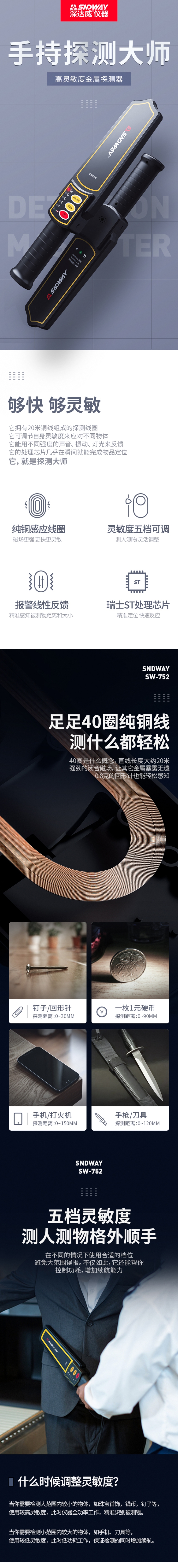 手持式安检仪金属探测仪器高精度户外小型考场学生防手机门扫描仪SW-752