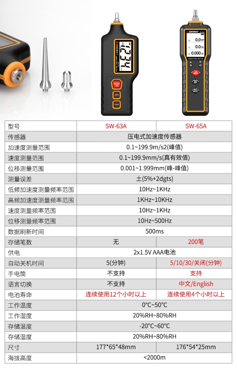 SW-63A测振仪便携式手持式笔式电机振动检测仪振动