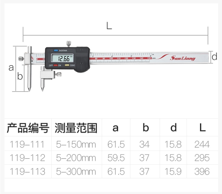 119-111 5-150mm中心距锥测头数显卡尺