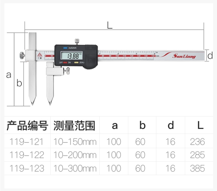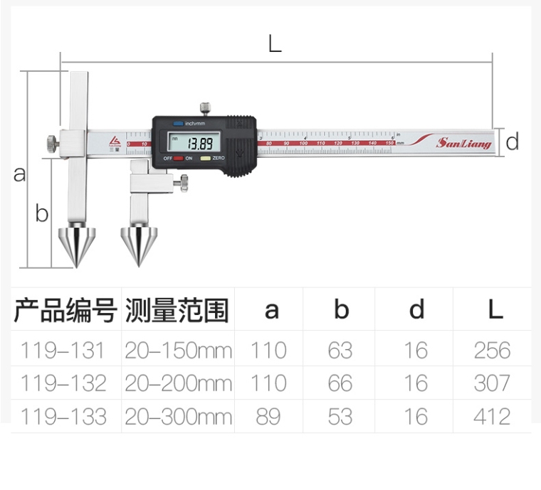 119-131 20-150mm中心距锥测头数显卡尺