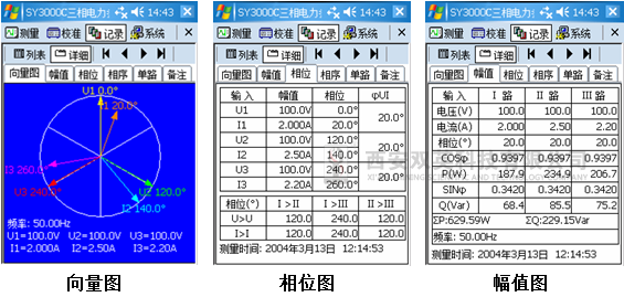 SY3000C智能三相电力参数测试仪采用掌上电脑进行操作和数据处理,掌上电脑亦可脱离主机采用蓝牙远距离通讯,小电流测相突破1mA,解决轻负荷小电流测相难的高精度智能化测试仪表。完全图形化界面,真彩色显示,触摸屏操作,汉字手写输入,人机界面友好,软件终身免费远程升级。仪表手持式结构、精巧美观、测量精准、操作简单、安全可靠,是电力系统电能计量和继电保护专业,进行二次回路现场检测的智能化仪表。也广泛适用于电气设备制造、石油化工、钢铁冶金、铁路电气化、科研教学等部门。
