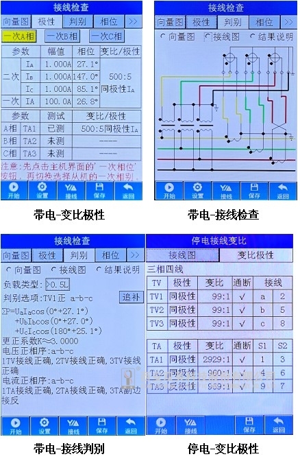 6、通过一次电流核对极性可以辅助进行接线检查,无需了解用户负载类型。
