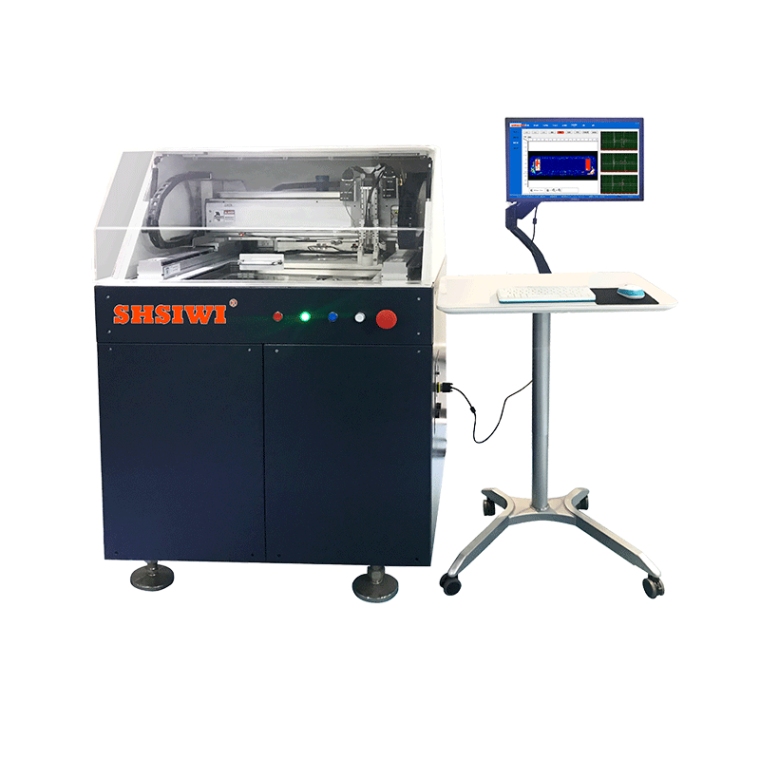 超声扫描显微镜(SAT)是一种利用超声波为传播媒介的无损检测成像设备,主要利用高频超声波,对各类半导体器件、材料进行检测,能够检测出样品内部的气孔、裂纹、夹杂和分层等缺陷,并以图形的方式直观展示。在扫描过程中,不会对样品造成损伤,不会影响样品性能,可满足陶瓷基板、IGBT、水冷散热器、锂电池、半导体、电器焊接件、金刚石复合材料、碳纤维复合材料等产品质控需求。