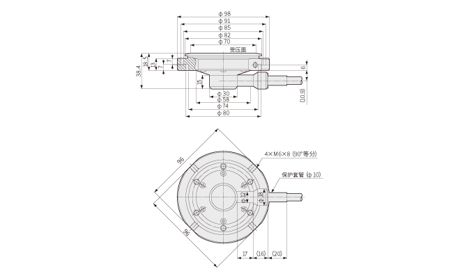 ●采用在受压面与应变片粘贴的膜片间密封压力媒体的双层膜片型,能够放大并传递微小位移的结构