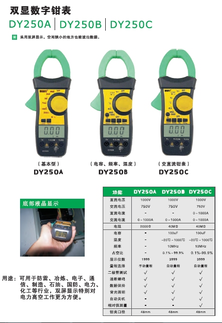 DY250A数字钳形万用表双屏数显钳形表钳表交直流电流测量表