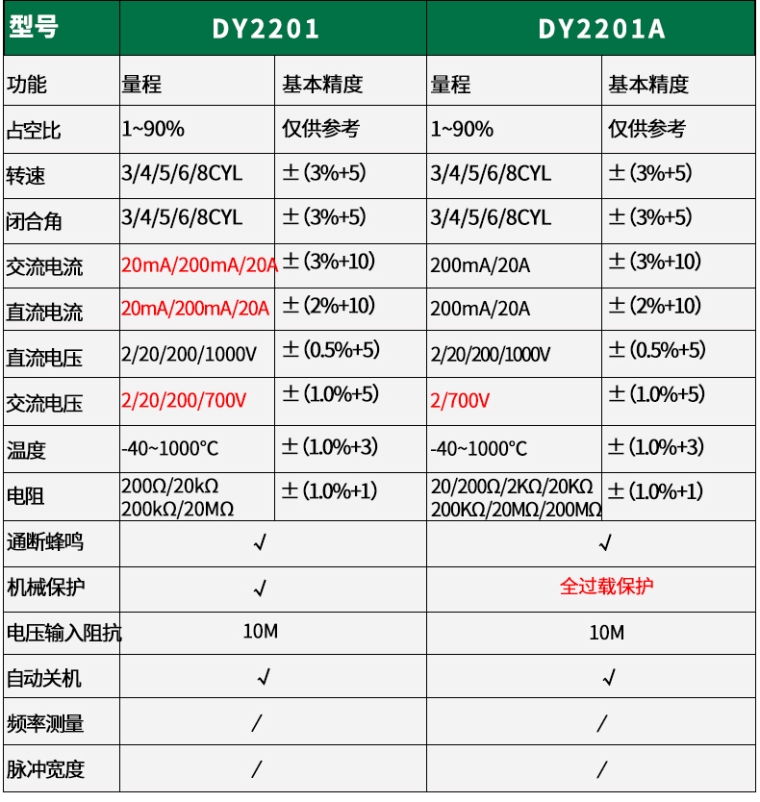 DY2201A多功能汽车检修万用表