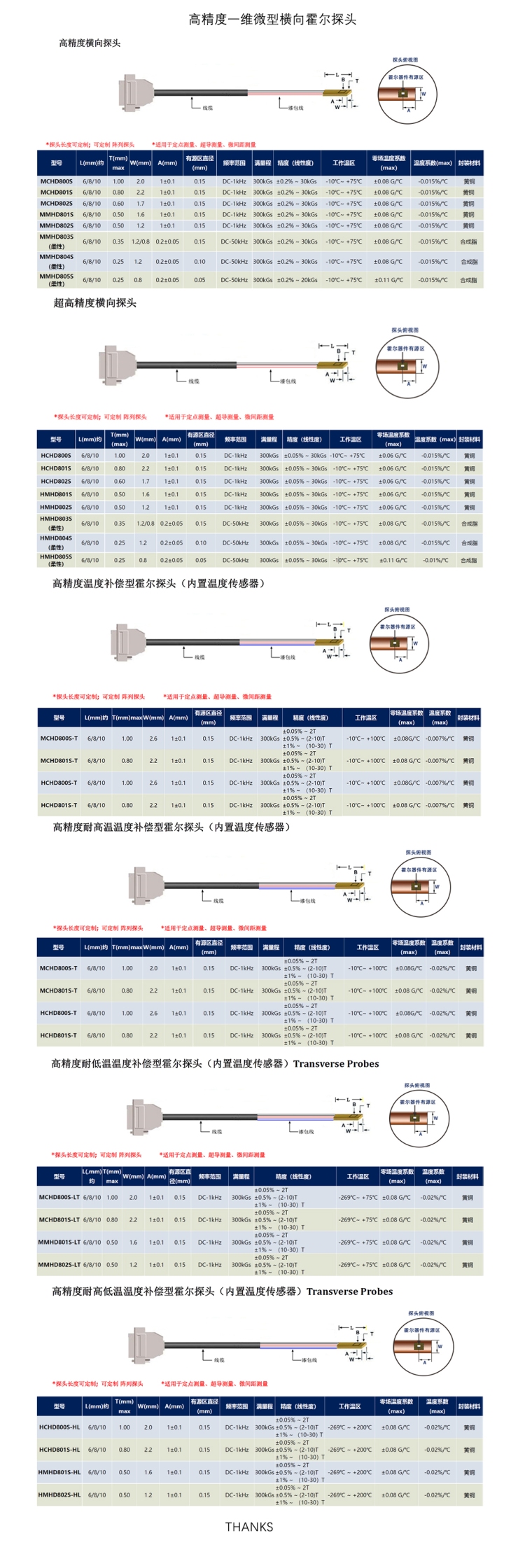 高精度一维微型横向霍尔探头
