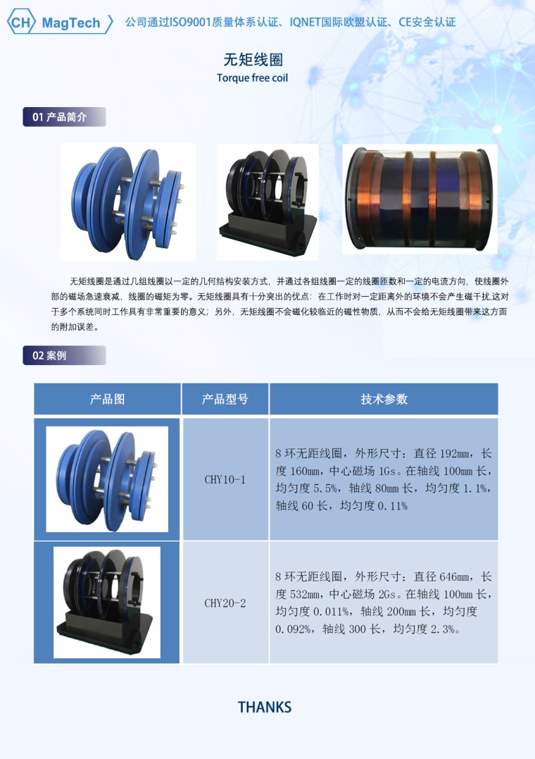 无矩线圈是通过几组线圈以一定的几何结构安装方式,并通过各组线圈一定的线圈匝数和一定的电流方向,使线圈外部的磁场急速衰减,线圈的磁矩为零。无矩线圈具有十分突出的优点:在工作时对一定距离外的环境不会产生磁干扰,这对于多个系统同时工作具有非常重要的意义;另外,无矩线圈不会磁化较临近的磁性物质,从而不会给无矩线圈带来这方面的附加误差。