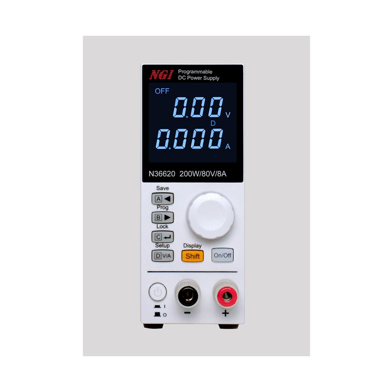 N36620-80-08 | 1 | 80V | 8A | 200W | 电压0.05%+10mV/电流0.2%+5mA | 10mV/1mA | RS232/RS485/LAN | 4U |
