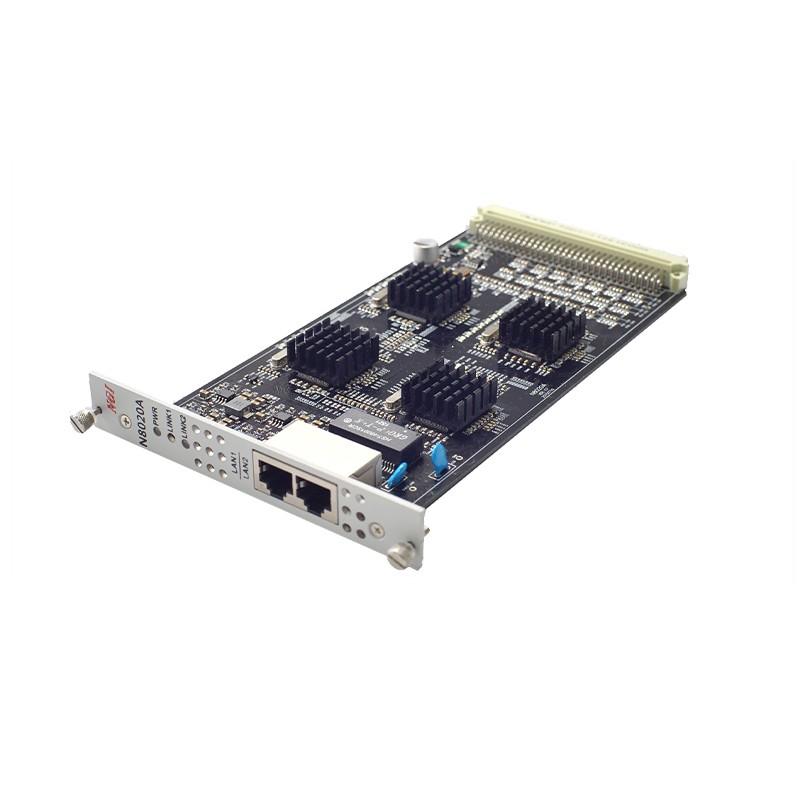 N8020A为一款高性能主控卡,作为NXI设备内各功能板卡与PC机之间的数据交换桥梁。N8020A主控卡安装于N8000A(N8000C)主机框内,对外提供2000Mbps高速以太网通讯带宽,通讯接口采用标准RJ45接口,便于用户接线、操作、系统集成。
