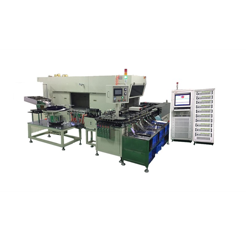 系统由自动抖料盘、极性矫正、预充电机(短路检测机)高温老化炉、电参数检测仪、自动分选框、自动流水线、其它硬件设备及后台系统组成。