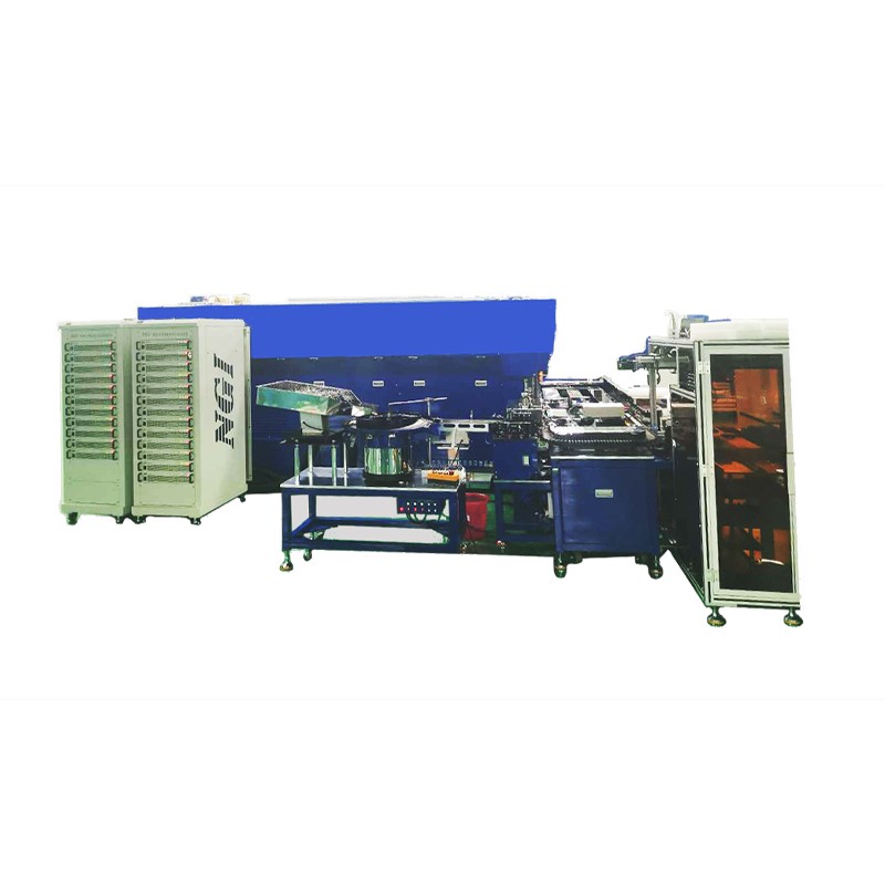 锂离子超级电容从入料到分选需要经过多个工序,一般有自动上料、开路/短路检测、充电高温老化、参数测试(含容量、直流内阻、自放电等参数)、充电、交流内阻测试、自动分选等工序。测试流程如下所示: