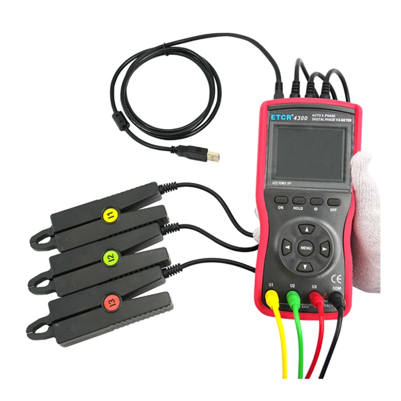 ETCR4300智能型三钳数字相位伏安表,配有的防振、防滑、高绝缘护套,仪表配有USB接口,可存储500组数据,通过系统软件上传所存数据到电脑,实现在线实时监测与历史查询,动态显示,能读取、保存、报表、打印历史数据等。