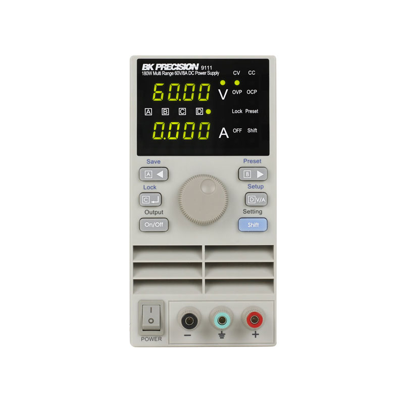 9110业界最高功率比的数字直流电源供应器,有最宽广的电压电流使用率,大大提高了应用范围,可自动控制电压及电流的变化率,功率比达到3倍之多,一台机器可替代以往60V/ 32V / 20V三种机型,减少您的重复的投资,大幅度节省成本,具有10mV/1mA高精度及高分辨率,低噪声及低涟波,高亮度LED显示,极小体积节约您宝贵空间, 同时还拥有***性能价格比, 让您以极低的价格轻松的替代传统电源。