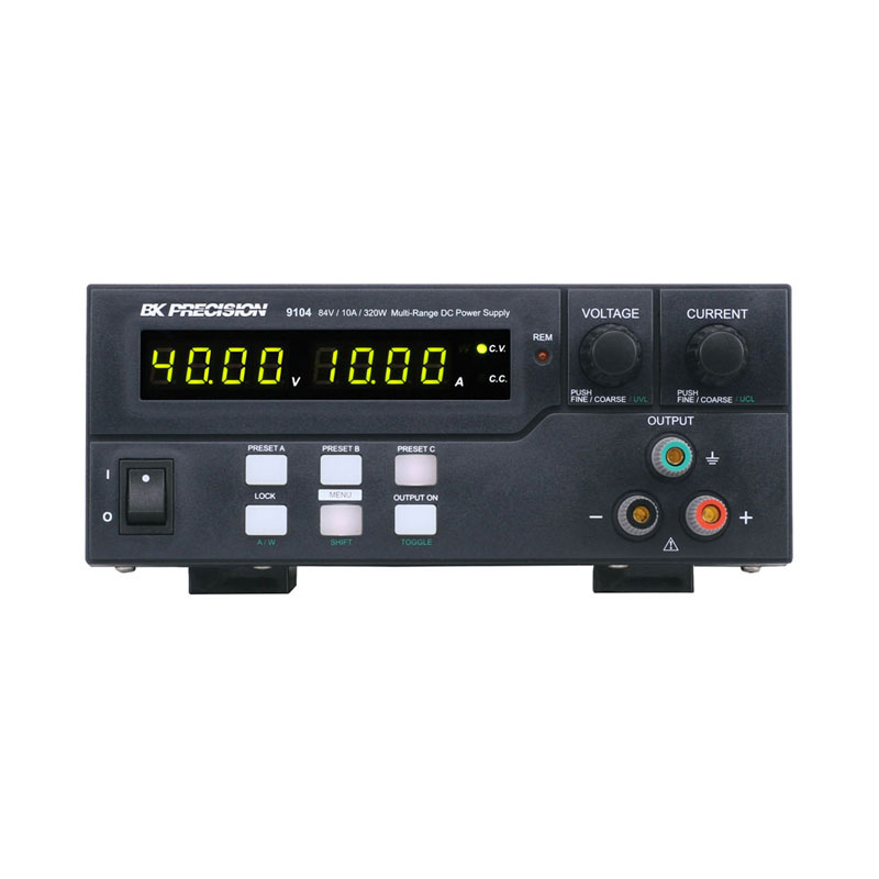 型号9103和9104宽范围直流电源供应器可以提供更宽广的操作区域来替代工作台上的多个电源, 与具有固定输出额定值的传统电源不同,这些电源会自动重新计算每个设置的电压和电流范围限制,在电源的最大额定电压和最大额定电流限制内,提供任意电压/电流设置下的320 W输出功率。