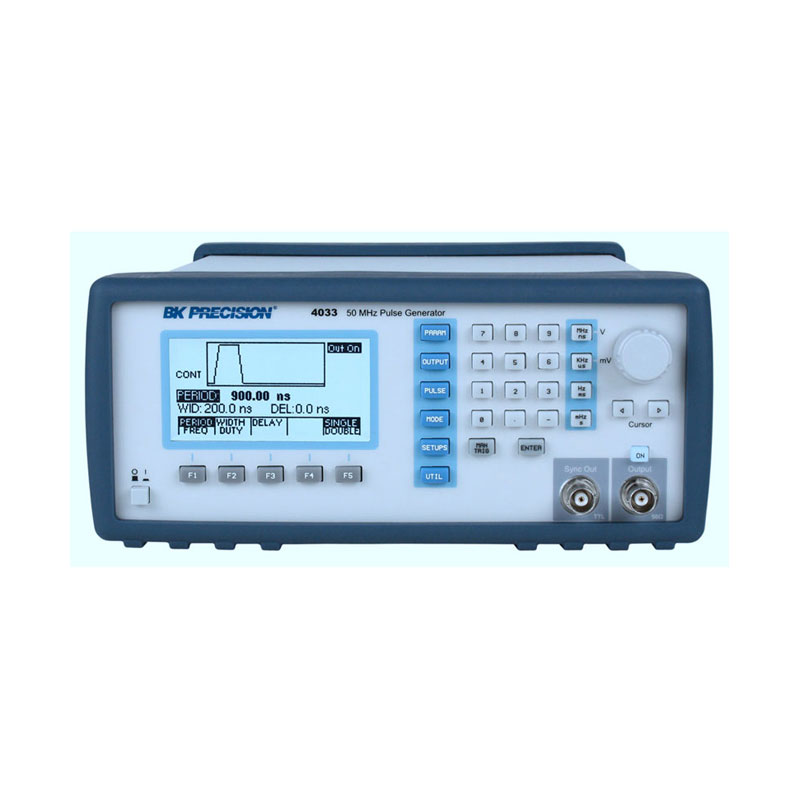4033和4034是高性能可编程脉冲生成器,用于测试TTL,CMOS,或ECL数字系统和电路。 这些仪器产生清晰和精确的脉冲高达50 MHz分辨率高达6位数,可变脉冲宽度为10 ns至10秒,脉冲延迟0 ns至10秒。 输出电压可调为-10 V到+10 V,脉冲振幅可设定为0.1 Vpp到10 Vpp(50欧姆的负载)。 所有参数,模式和功能都可以通过前面板或远程控制命令来控制。 此外,脉冲产生器提供可选择的互补脉冲和双脉冲,触发,闸控,Burst模式。