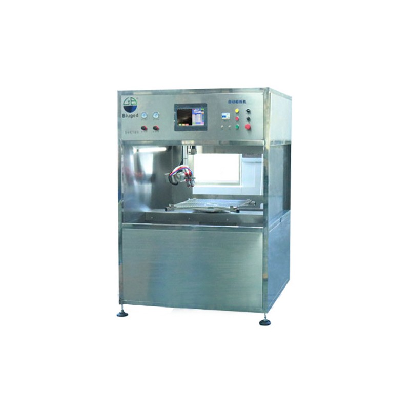 这是一款水平式自动喷板机,与垂直式自动喷板机相比,具有以下特点: