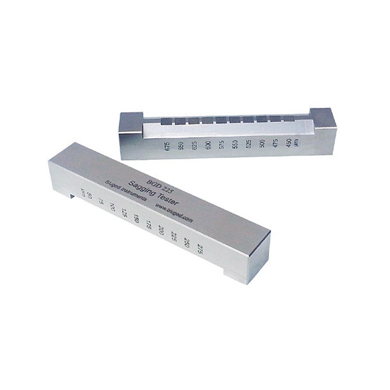 涂料在垂直面及窗孔、边缘和角落部施工时若超过一个临界厚度,在它未完全固化成膜时会由于本身重力而产生流挂成滴。不同体系配方设计有不同临界厚度,Biuged公司提供的流挂测试仪按GB/T 9264《色漆流挂性的测定》及ASTM D 4400 标准规定设计,用于色漆相对流挂性的测定。
