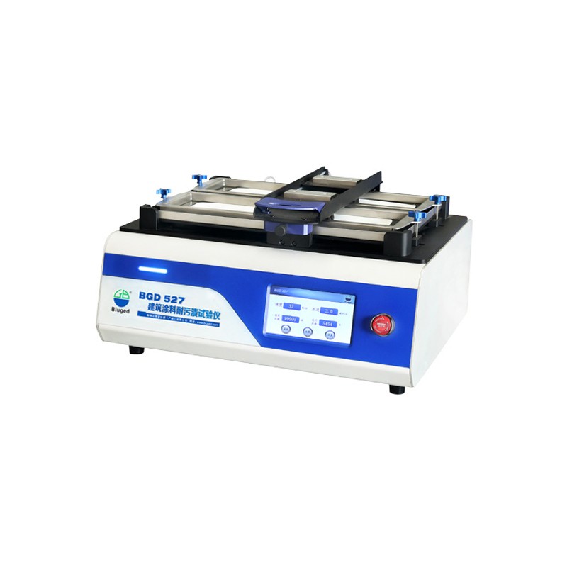 该仪器主要用于对建筑内墙涂料黏附常见生活污渍并经中性洗涤剂擦洗后的内墙耐沾污能力进行评估。主要目的是对建筑内墙涂料抵抗常见生活污渍污染的能力进行评定。同时,该仪器的耐擦洗次数的设定和记数均采用液晶屏显示,使整个试验过程更加清晰,操作者使用更加方便。