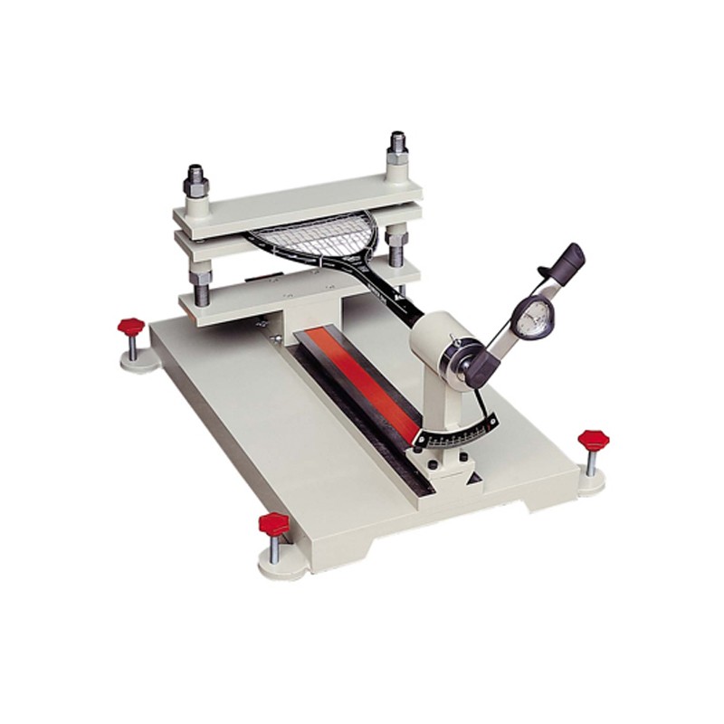 本试验机用于测试羽球拍及网球拍之扭力强度。通过机台上下两支点固定球拍距离框顶110mm之头部,在握柄尾端用扭力扳手施予扭力,観察试样损坏状况。