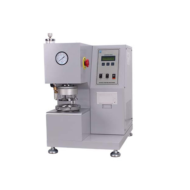 本试验机,用于测试纸板、皮革、布类之抗破强度,只要放入试样,即自动侦测并夹持试样进行测试,自动计算并储存相关资料及打印。