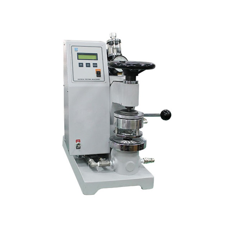采用压力转换器讯号,试样破裂时自动保留最大强度值,并有声音警示。将试样置于上、下压盘间夹紧,然后利用马达注入甘油均匀的施加压力,使试样与橡皮膜一起凸起,直至试样破裂为止,试样耐破度是施加液压的最大值。
