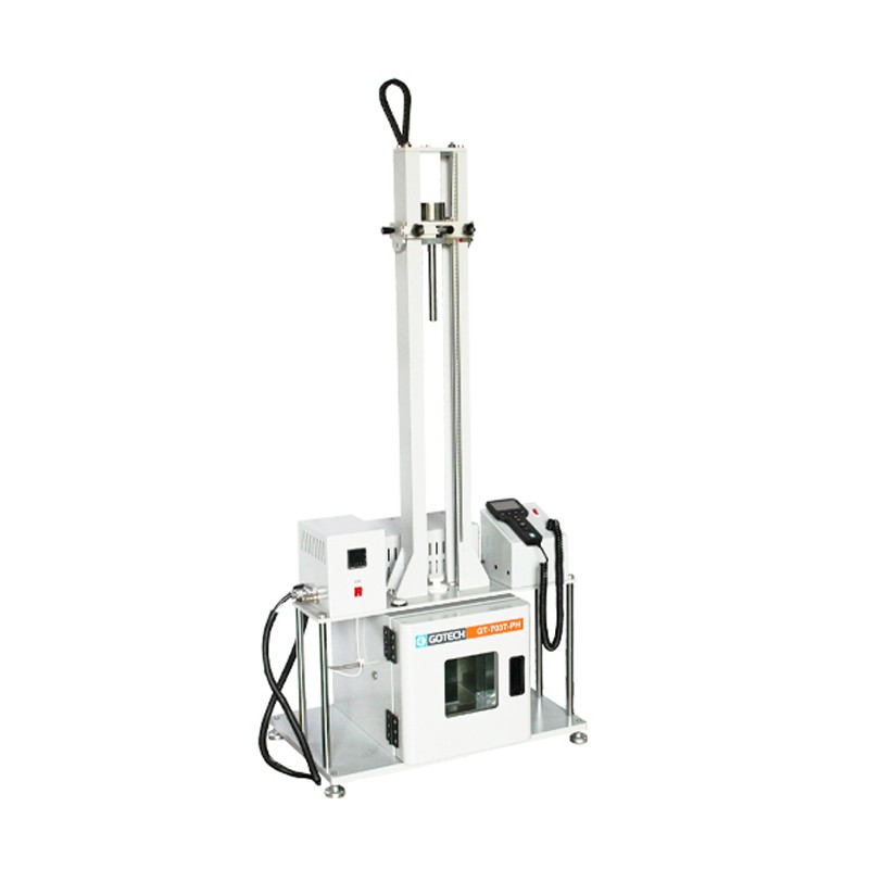 本仪器用于测试橡胶耐穿刺程度。利用固定重量的冲击座,前端可放置不同锥度冲击刃,采用手动释放,观察不同锥度下试样被穿刺程度。