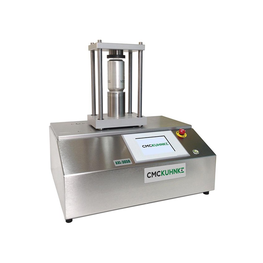 CMC-KUHNKE AXL-3050 罐身轴向耐压测试仪——操作简便,修边罐和成品罐共用一套复合模具,测量单位可分别选择:Kg,N,LBS。罐子放入测试座,启动测试,托板逐渐抬升,罐子顶到上压板后,罐身开始受力,当压力达到罐身承压极限时,罐身出现变形,变形瞬间压力值即为所需测量值,该值随即在触摸屏上显示。托板的抬升速度可根据需要调整。测试行程可通过垫块调整。