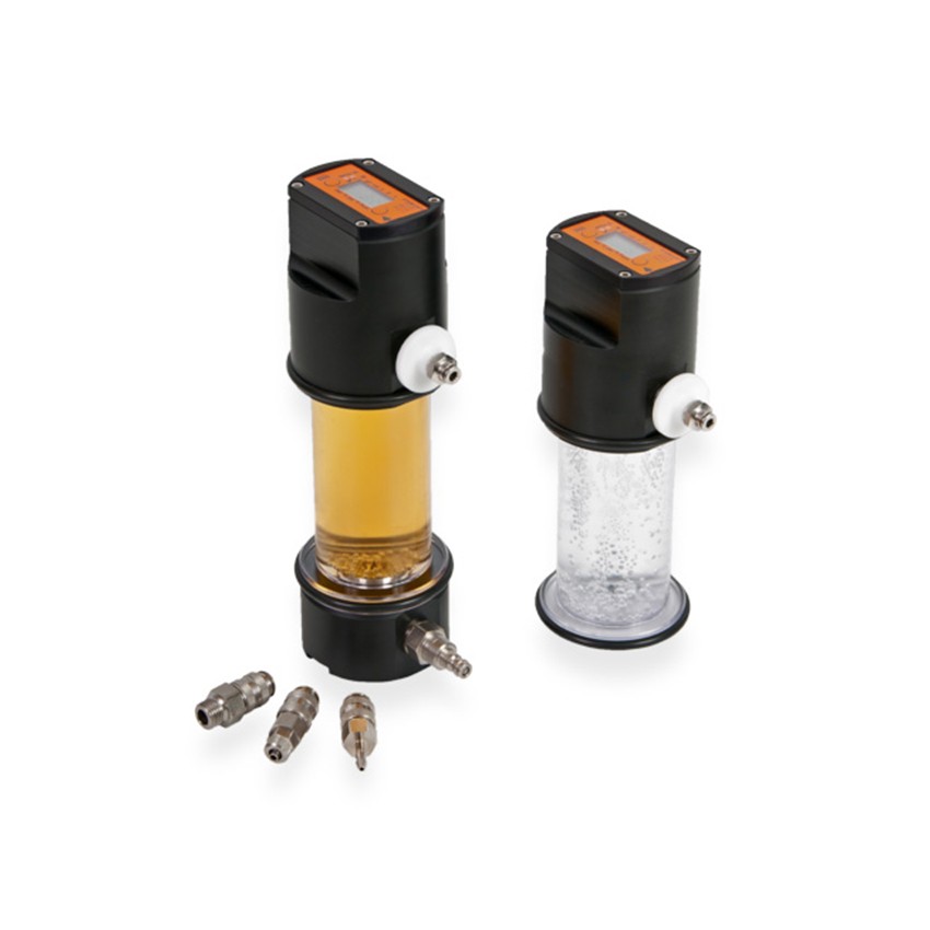 仪器通过管道连接到罐或小桶,并填充产品。充满断开后,通过摇晃和吸气进行测量。测量操作由 CO2 Mano 二氧化碳流体压力表控制。