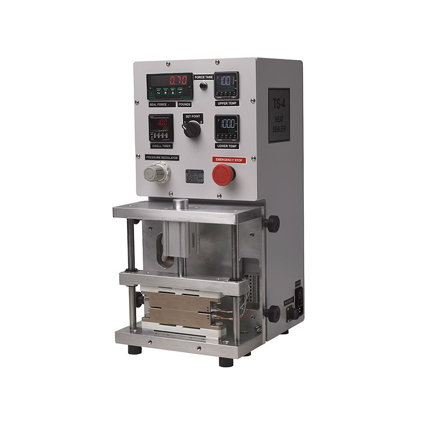 TS-4 热封测试仪采用精密称重传感器系统,测量并显示施加在薄膜样品上的总力,从而使密封一致且精确。集成数字电子控制器显示密封力、热封时间和上下夹具温度独立控制。