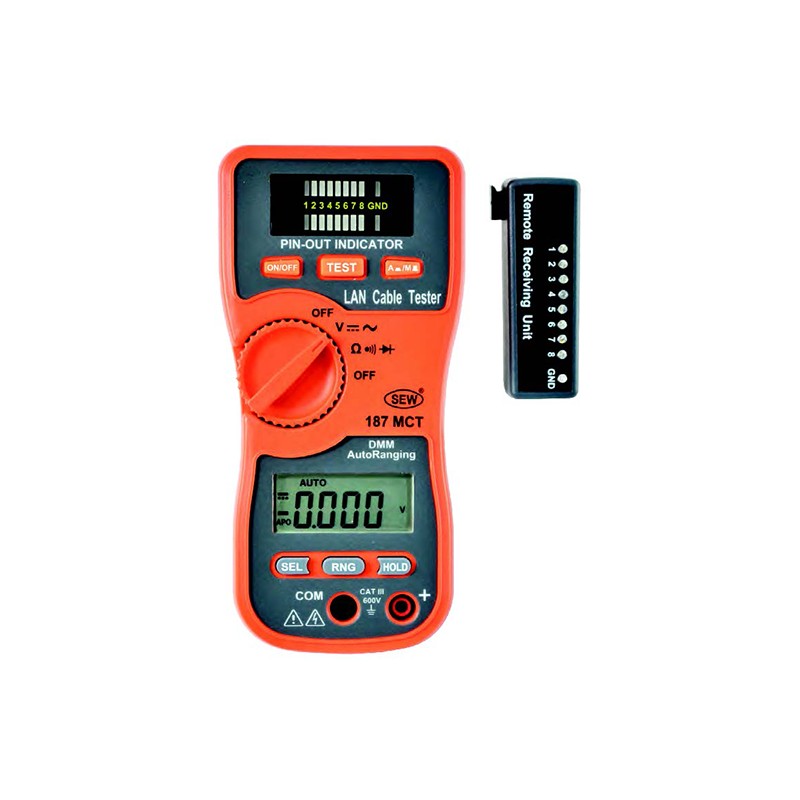 ●局域网络测试仪(187MCT)供检测RJ45/RJ11缆线,10/100base-T缆线及TokenRing缆线的通路情况。它藉由远程接收计,很容易检测出网络线是否导通、开路、短路、或错接。
