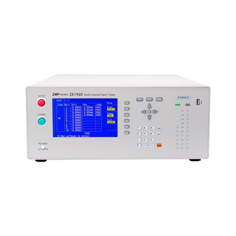 ZX1960系列独立多通道耐压测试仪是常州致新推出的第三代耐压测试仪。该系列耐压测试仪各高压单元并行独立输出、互不影响,单机最多支持10组高压单元输出及测量。该系列耐压测试仪解决了以往多台耐压机同时测试多个产品电压相位不同步造成引脚间打火的问题,同时也节省了空间,大大提高了测试效率。