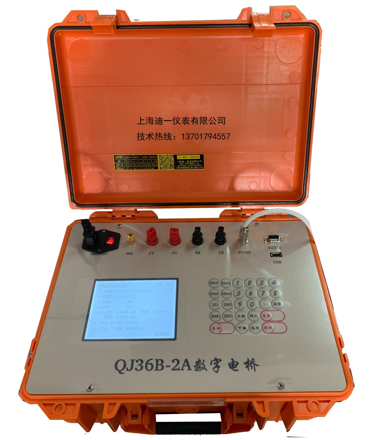QJ36B-2A(台式)型数字电桥是新一代电缆、电线铜排、铝排等直流电阻的测试仪器,是凯尔文电桥和QJ36B-2型电桥的更新换代产品。QJ36B-2A(台式)型数字电桥最大测试电流为10A,采用7英寸真彩屏4位半显示,读数直观、测量精度高、稳定性好、自动量程操作更方便。本电桥有温度测量功能,能直接换算出20℃的电阻值。配有USB口插入U盘可以以EXCEL形式储存数据,网口可以与计算机通讯,测试数据可以由计算机保存并打印。本仪器技术性能能满足GB/T3048.4导体直流电阻试验标准