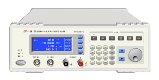 EE1652 型数字合成低频功率信号发生器,采用DDS数字直接合成技术,由AVR 高速单片机控制,LCD(液晶屏显示)、按键操作,具有开机延时输出,短路限流保护,输出幅度过大保护等安全功能。操作简便,更具人性化,是传统音频信号源的理想升级替代品。