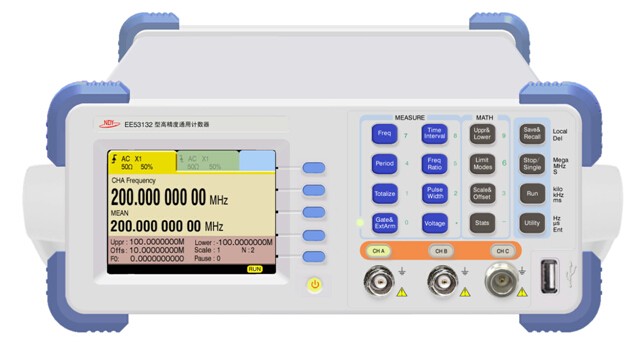 SP53132型高精度通用计数器是我公司新近研制的一种高精度测频测时仪器。它采用高可靠性大规模集成电路和CPLD器件,由微机控制进行功能控制、测量时序控制、数据处理和结果显示。还采用倒数计数技术和数字内插技术,实现全范围内的高精度测量。它除了具有频率、周期、时间间隔、脉宽、占空比、计数等测量功能外,还有频率的多次平均、最大值、最小值、标准偏差、阿仑方差和PPM的测量运算功能。机内钟频为80MHz。测量时既可内部自动测量,也可由外部信号触发控制测量。该机性能稳定,功能齐全,测量范围宽,灵敏度高,动态范围大,精度高,体积小,使用方便可靠。在工业生产、科研计量等领域有着广泛的用途,是传统电子计数器理想的更新换代产品。
