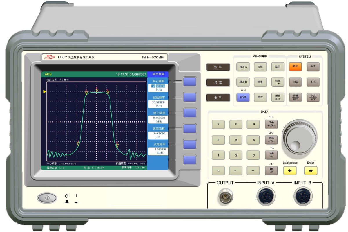 EE8710型数字合成扫频仪是高精度、宽频带的扫频仪,仪器应用了微机处理和锁相技术,使频率范围从1MHz~1024MHz能精确的分辨到100Hz,它不仅是一台高精度的扫频源,同时是一台高精度的标准信号发生器。被广泛地应用于高频和超高频领域中,对雷达系统、通讯基站、电台、广播电视收发系统、有线传输系统、院校科研设备等进行分析测量,对网络、器件的测量提供了方便。