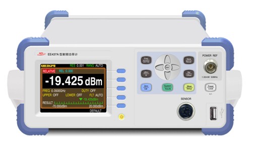 EE437A型微波功率计是一种单通道、 可程控高性能功率计, 配8480系列功率计探头,可对不同频率、功率的微波信号进行高精度的平均功率测量。本仪器采用高亮度彩色液晶显示屏,读数清晰、亮度高、寿命长。该机具有功耗低、体积小、重量轻等特点。仪器测量功率时既可以选择自动测量量程也可以选择手动测量量程。该仪器是生产车间和实验室微波计量和测试的仪器。该仪器测量的稳定性好、分辨率高、重复性好,可用计量信号源输出功率的误差和准确性,也可用于自动测试系统中测试微波功率,以及测试放大器输出功率,衰减器的衰减量等等。