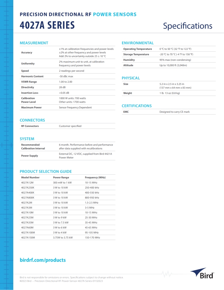 RF功率测试Sensor(10-15MHZ) Bird 4027A10M
