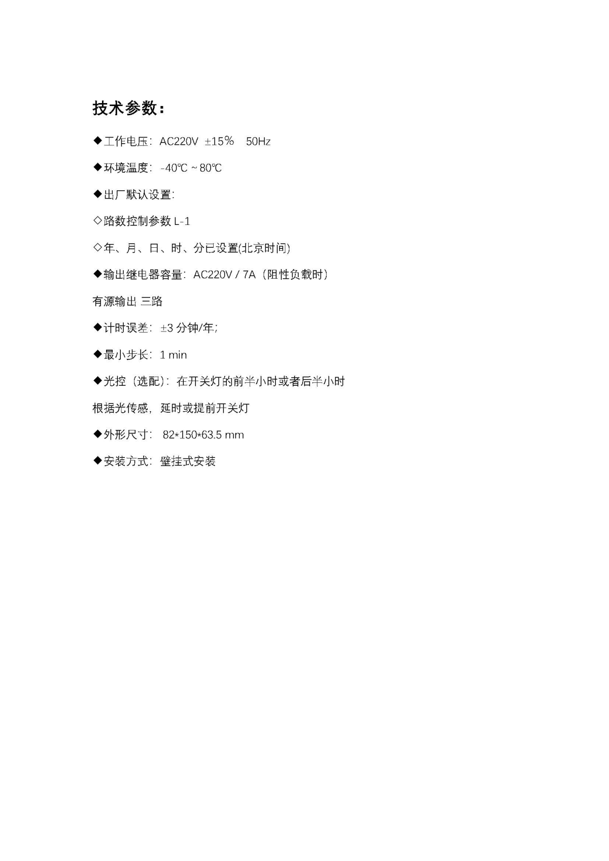 SL-601系列智能型路灯自动控制器采用国外先进的微处理器,可靠性高、误差小、稳定性强。电路设计及程序编制均全面考虑我国地理和气象条件、日出日落的关系、四季的变化规律等诸多因素, 预置了多种合理且实用的参数,并可根据用户需要设定多种功能及修改参数,运用微处理器精确控制时间。并且有半夜控制功能,能适应不同地理环境的需要;是路灯、航标信号灯、霓虹灯、广告灯箱等设备的**时间控制器;可广泛应用于街道、铁路、车站、航道、工矿、学校及供电部门等一切需要时间控制的场所。