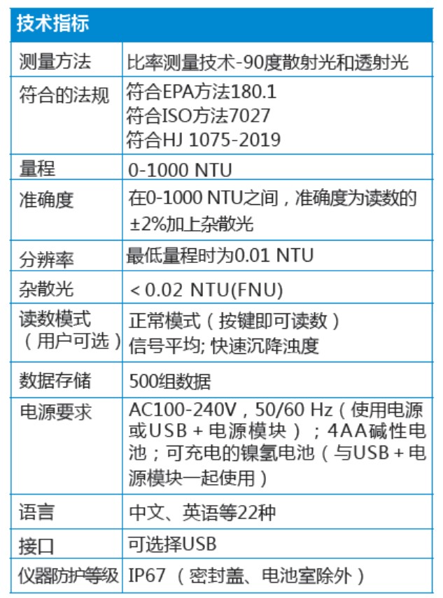 光学系统利用哈希公司的比率测量技术,双检测器的光学系统可以对样品的色度,光线波动以及杂散光进行补偿,对于大多数样品而言,即使在现场环境恶劣的条件下,仍可以获得实验室级别的测量性能。