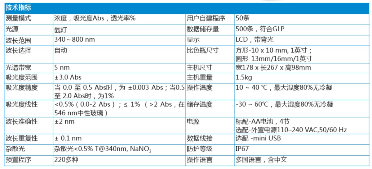 DR1900 便推式分光光度计内置有220多种测试方法的应用程序(例如COD,总磷,总氮,氨氮,铜,铁,硝酸盐等),该仪器可广泛应用于工业、市政、环保、教育等领域的水质监测。